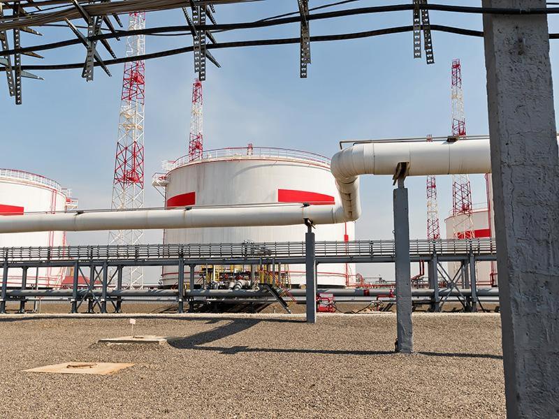 工厂内垂直和圆柱形压力容器的视图。压力容器的设计、制造和操作由工程部门以法律为后盾进行规范。